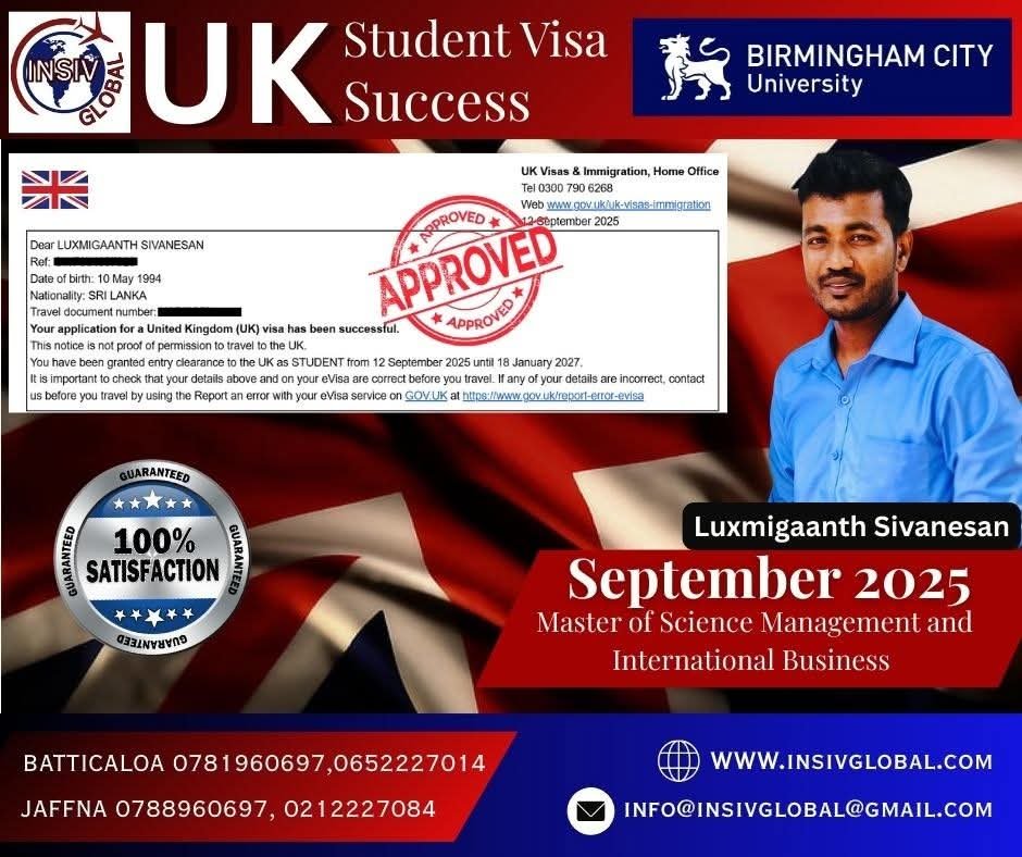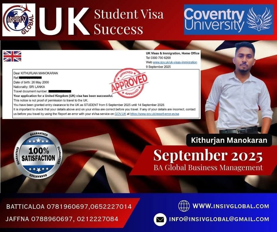 I highly recommend INSIV GLOBAL (PVT) Ltd to anyone planning to study abroad. They are truly trustworthy and professional in everything they do. The team guided me step by step through the entire UK student visa process, making it simple and stress-free.