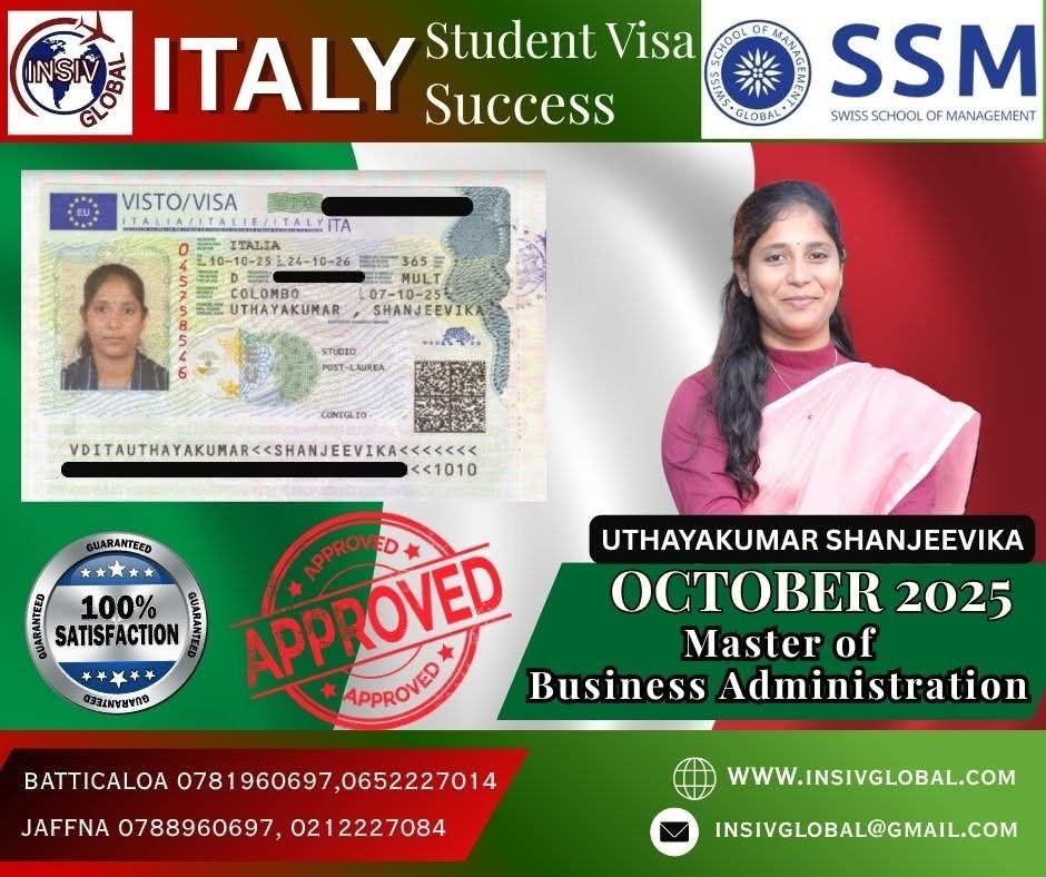 I’m extremely satisfied with the services provided by INSIV GLOBAL (PVT) Ltd for my Italy student visa process. The team handled everything with professionalism and genuine care, making the entire procedure smooth and easy to understand.